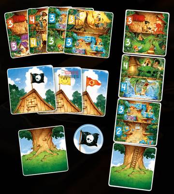 「ツリーハウス」は、最適な色や価値の部屋が描かれたカードを選び、自分の素敵なツリーハウスを構築します。