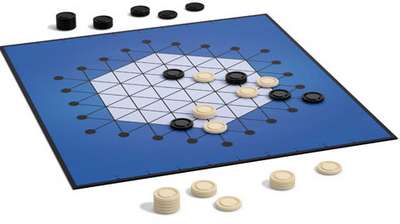 ボードは6角形になっていて、外周から中に駒を押し込みます。押し込んだ先にある駒は空いている先の交点へスライドします。外周は押し入れる専用の場所なので、もしある一列すべての交点が埋まっていたら、そこには押し入れることは出来ません。
