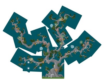 各プレイヤーはランダムに幹カードを受け取り、対応するトークンを準備します。