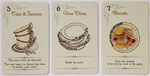 残り10枚のモーニングティーカード(2-11)を裏向きにまとめてシャッフルし、1の右に表向きに並べパントリーとします。