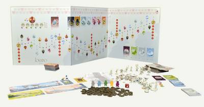 村:村は土産の山札から3枚公開し指定された金額を支払い土産を購入できます。土産カードは各種類集めた順番で点数が変化し、その都度点数を計上します。またコレクションに加えます。