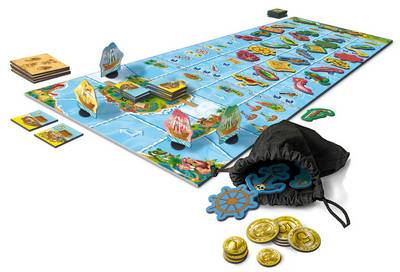 ゲームボードは、大きく分けて2つの部分に分かれています。4列にいろいろな海賊アイテムが描かれた部分と、船が進む部分です。