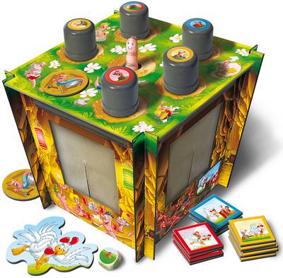 もしそこにミミズがいたら蓋に描かれたのと同じ色のポイントタイルを取ります。これをダイス目の数だけ行って、見つからなかったミミズプレーヤーは同様に自分が入っていたふたの色のタイルを受け取ります。ニワトリプレーヤーは時計回りに順番に移動します。