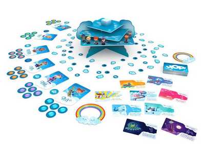 ゲームボードを組み立てて、雲トークンをゲームボードの周囲に並べます。