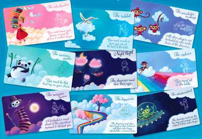 自分のフィギュアが置かれている階層と同じ点数と、獲得した雲トークンに書かれている数字と同じ点数を計上し、最も得点の高いプレイヤーが勝ちます。