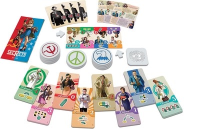 「シークレット:米ソ諜報戦」は、CIAやKGBのエージェント、はたまたヒッピーとなり、様々なカードのアクションを行う正体隠匿のゲームです。
