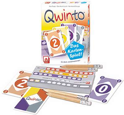 「クウィントカードゲーム」は、3色のカードを効果的に使い、数字をシートに埋めていくゲームです。