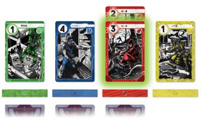 4人プレイの場合は2対2のチーム戦、2-3人の場合は個人戦となります。またオプションの「情勢カード」を使用することで、ゲームごとに異なったルールでプレイすることも可能です。