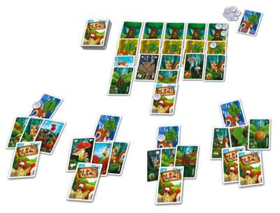 人数に応じて大木カードを横に順に並べ、対応するリスのカードも準備します。