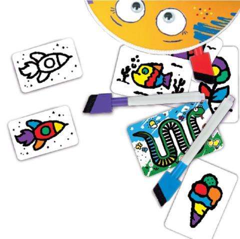 「スピードカラーズ」は、カードの柄を覚え、正しくきれいに早く色を塗ることが目的のゲーム
