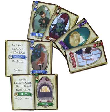 この空想に満ちたカードゲームは、3-8人のプレイヤーが、キャラクター、場所、オブジェクト、イベントを、皆と一緒に物語を作っていきます。