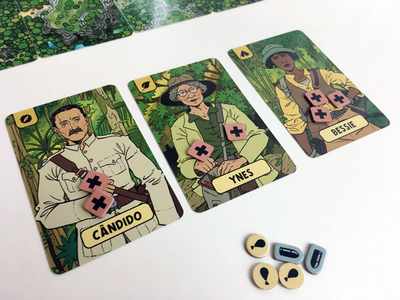 ゲームの難易度を決め、探検カードと体調トークンを準備します。