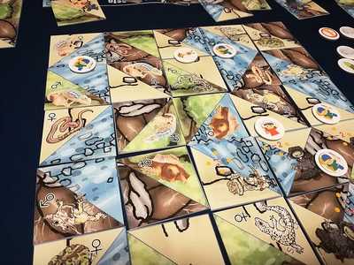 「はちゅパーク」は、それぞれのプレイヤーが爬虫類園オーナーとなり、5枚×5枚分の爬虫類園建設予定地にカードを配置するタイル配置系ゲームです。