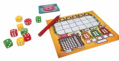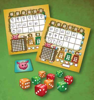 「ハーベストダイス」は、自分の農場に野菜を育て、場合によりブタに野菜を食べさせることになるダイスゲームです。