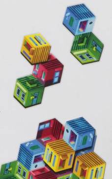 なおタイルは上に積み重ねられますが、プレイヤーボードをはみ出して置けません。またタイルが同じ高さになる場所にのみタイルを置くことができます。タイルを重ねるとその下のタイルを上書きされます。