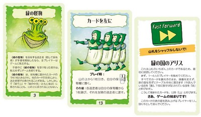 この「Fast Forward」シリーズは、「フルーツジュース」で新たに使われたFable Gameシステム」を採用しています。番号順に重ねられた山札を使ってプレイしていくとカードやルールの「発見」が行われていきます。