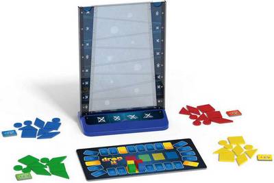「ドロップイット」は、各形のタイルをプラスチックのスリットの上から入れて得点を得るゲームです。