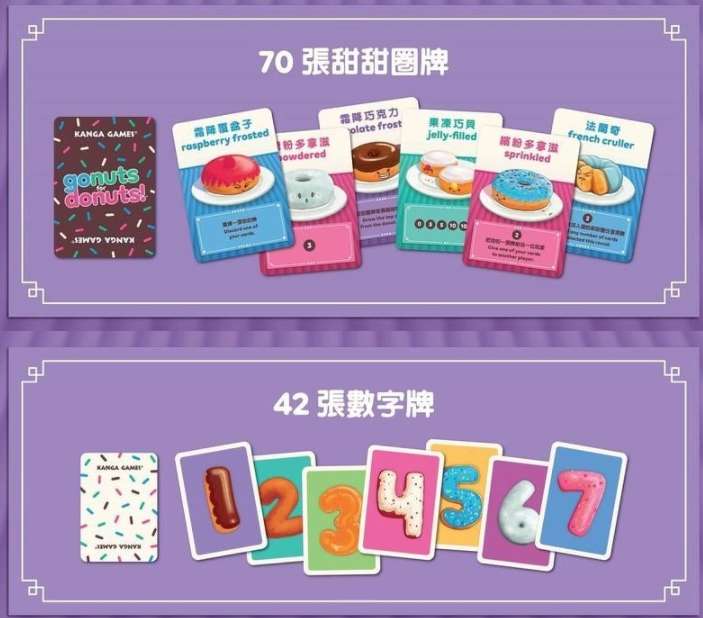 各プレイヤーはプレイ人数+1枚のドーナツカードを引き、右側に表向きに並べ、ドーナツトレイと準備します。