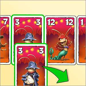 同じ数字があったら、タイブレイクカードの持ち主か、プレイヤーから時計回りに近いプレイーヤーが先に取り、その後手札を補充します。