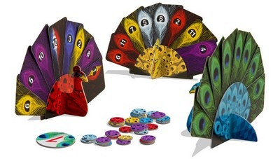 「ピココ」は、クジャクの尾羽を模したカードを自分の手札とし、自分の手札が見られないユニークなトリックテイキングゲームです。