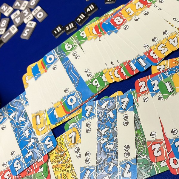 「サファルー」はカシノ系のゲーム。同じ種類のカードを合わせていきますが、中にはペナルティになるカードもあり、これらをうまく回避することも必要なゲームです。青いカードが高得点です。