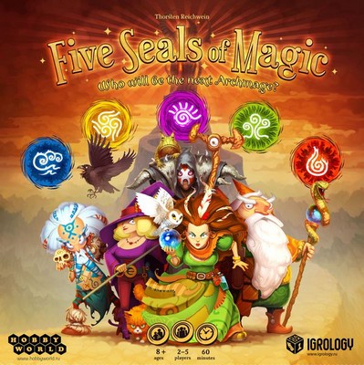 「ファイブ・シールズ・オブ・マジック」は、パワフルな呪文を探しに「秘儀の塔」のダンジョンを探索するダイスとカードを用いたゲームです。