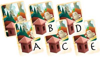 最年長のプレイヤーが“親”となり、親は小道カードの山札とサンクチュアリカードの山札を作り、それぞれよく切って裏向きにしてテーブル中央に置きます。