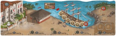 1、商品の積み替え:自分の船が海マスにあれば、倉庫と船室の間で好きな数だけ商品を積み替えることができます。これで船室がいっぱいになったら勝利点を得ます。