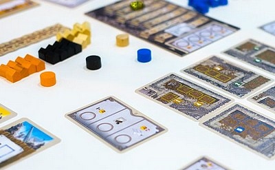 プレイヤーの数に応じて、図面カードを並べ地図を作り、指定された場所に瓦礫トークンを置きます。