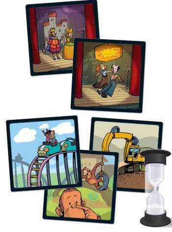 そのあと、チャレンジしたプレイヤー以外が、この裏向きの山に描かれている絵を順番に思い出してゆきます。その時間は砂時計が落ちるまでです。