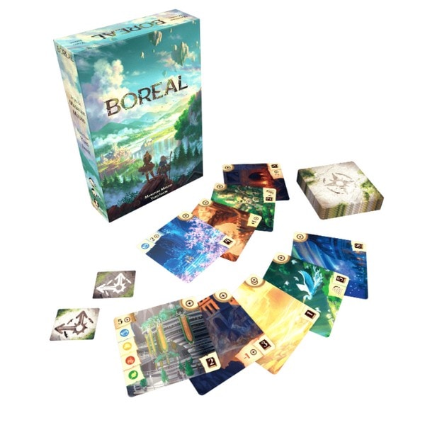 「ボレアル」は、2人の冒険家が知識を求めて古代世界の遺跡を探検するカードゲームです。