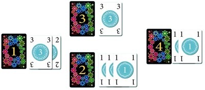 場に提示された宝石カードに対して、裏向きに入札額を提示します。入札額に従い宝石カードを獲得しますが、入札されたお金は、順位に応じて交換されます。