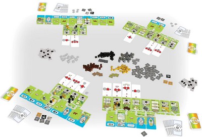 建物をグレードアップすることによって、そして金を集めることによって、様々な方法で村のカードから得点されます。