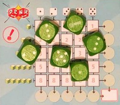 「ペンク」は、手番ごとにサイコロを振り、その目によってシートのマスをチェックしていきます。