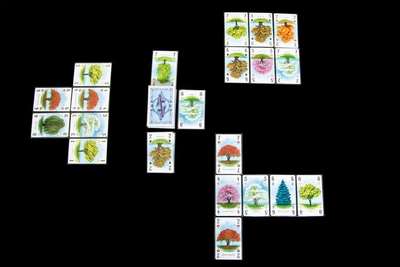 自分の手番には1枚のカードを表向きに自分の前に樹木カードをプレイします。その後のプレイは上下左右に接するようにプレイしていきます。