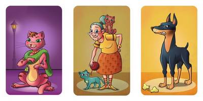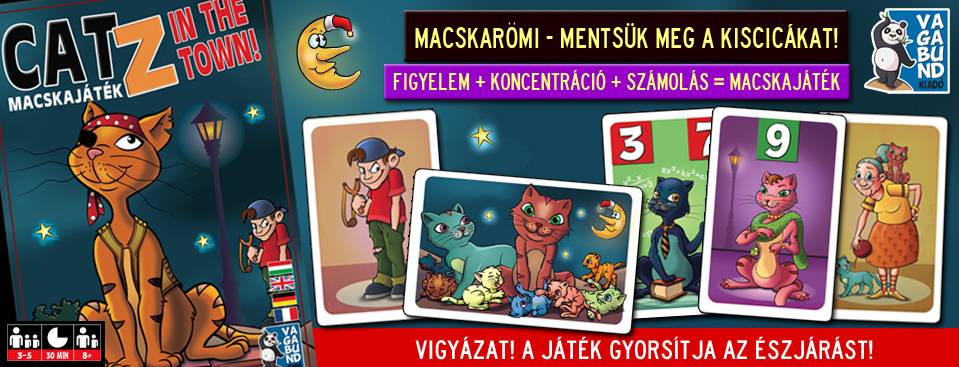 「キャッツ・イン・ザ・タウン」は、4種類の家ネコの列を集め、1色につき1列ずつ集めます。