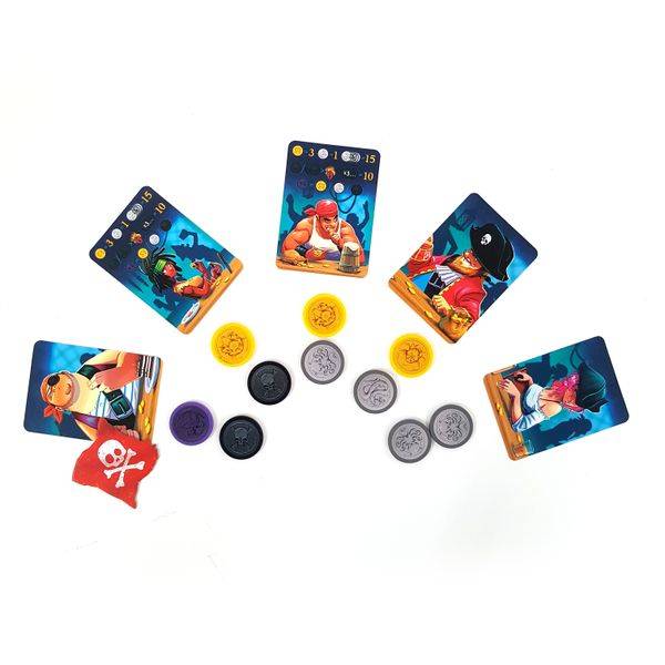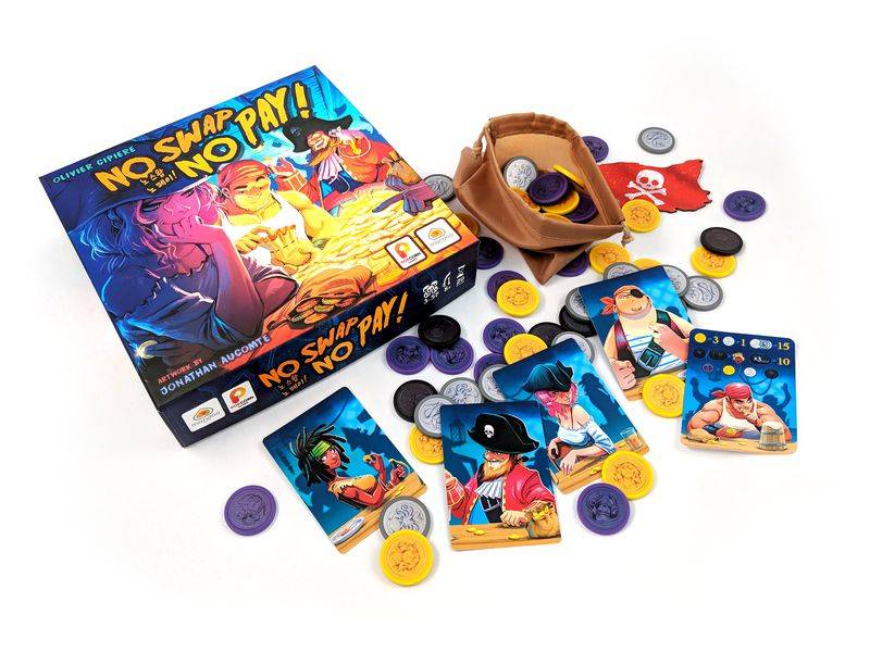 「ノースワップ・ノーペイ」は、海賊団のコインの分配をテーマにした、ドラフトと判断のゲームです。