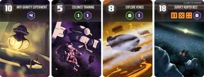 ミッションに入札したプレイヤーは、最高値を入札したプレイヤーからミッションを達成する権利があり、ミッションを最初に達成したプレイヤーにはミッションカードの左上に書かれた分の勝利点が入り、それ以外のプレイヤーはその半分の勝利点が入ります。ミッションを達成したらそのミッションカードを捨て札になります。ミッションには必要な要素は、エンジンダイスを用いるエンジン、アイコンを用いるバイオテックと科学があります。