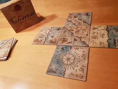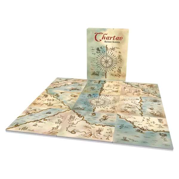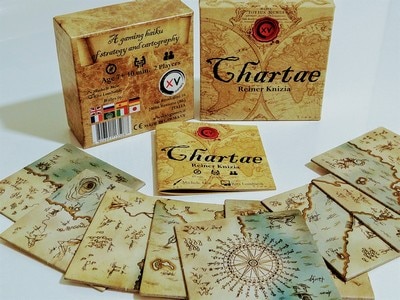 「チャータ」は、プレイヤーは古代の地図を覚えて構築しようとする地図製作者をテーマにしたゲームです。クニツィアの2人用ゲームです。