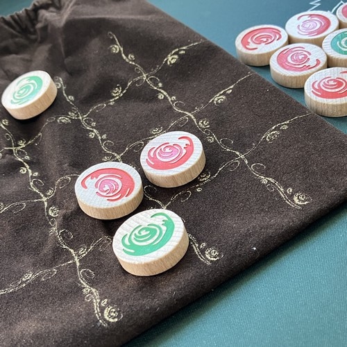 ポイント:種を植えるためにボードに置き、隣接するものをひっくりかえします。一列できれば自分の花を収穫でき、残りをバスケットに戻すことを繰り返していく思考系ゲームです。