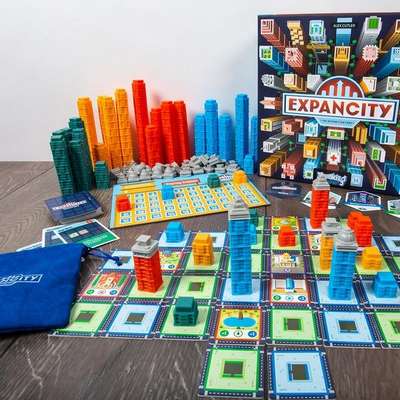 「エクスパンシティ」では、都市を舞台に都市計画家や不動産開発業者となって競い合い、近隣住民に対して最高のビルを建築します。