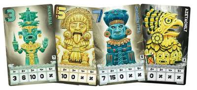 「チャチャポヤ」は、アステカの秘宝にアプローチする、脱落の危険や宝物の取り方に注意を払う、同時解決系の入札ゲームです。