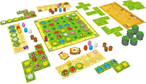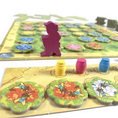 場からフィールドを1つ選択し、倉庫にある花トークンと蜂の巣トークンで場を埋めます。