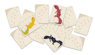 「レオパニック」は、1枚ずつカードをめくっていき、3つの要素が同じレオパを見つけたら急いで捕獲するスピード・アクション系ゲームです。