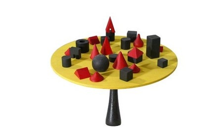 はじめに支柱の上にコルク珠を乗せ、その上にボードを載せます。ボードの上には様々な形の積み木を積んで、うまくバランスが取れる場所が見つかったら、そこを支点にしてゲームスタートです。