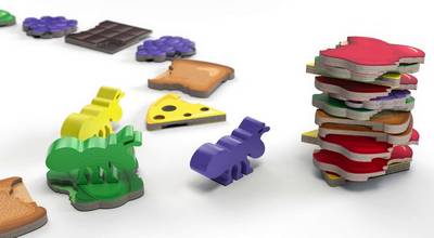 ルールはどれかのアリを進めて並べたエサコマを取って行き、アリのゴール順でその価値が変動するだけのシンプルルールですが、全員どのアリも進めることができるので、互いの取ったエサコマを見ながら毎回悩みます。