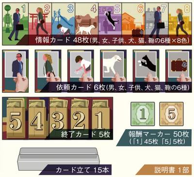 「探偵稼業」は、情報交換を効果的に行い、捜査対象を見つける、手軽な推理ゲームです。