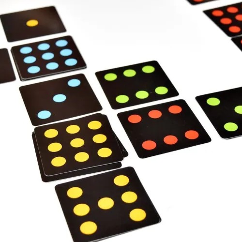 各プレイヤーは1-9個の点が描かれた担当色のカードの山を持ちます。