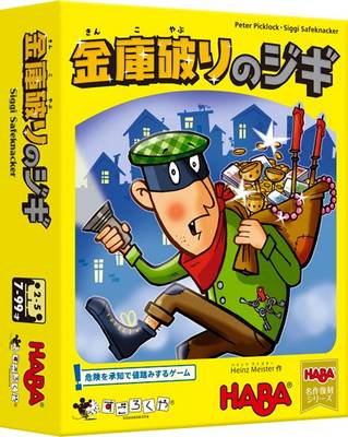 「金庫破りのジギ」は、指示された金庫カードの数値を見て、山札からめくるカードの数値がそれよりも高いか/低いかを当てることでご褒美を集めるゲームです。