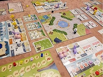「アニマルシェ」は、広場にお店を出したり売却したり、資源を手に入れたり、お客様をお店に招いたりする勝利点を得ていくワーカープレイスメントゲームです。